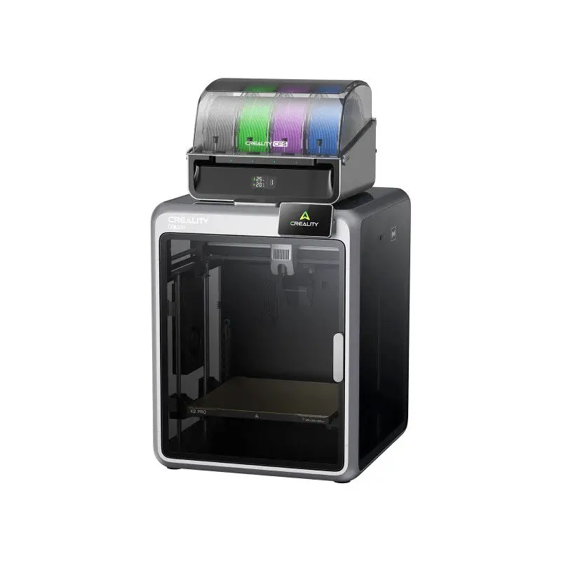 La Creality K2 Pro CFS Combo es una impresora 3D de alta velocidad y precisión, con volumen de impresión de 300×300×300 mm y hasta 600 mm/s. Incorpora el innovador sistema CFS, que permite imprimir en multicolor o multimaterial con hasta 16 filamentos. Su cámara calefaccionada y boquilla de 300 °C la hacen ideal para materiales técnicos como ABS o ASA. Además, cuenta con nivelación automática, monitoreo por IA y conectividad Wi-Fi, ofreciendo una experiencia profesional y totalmente automatizada.